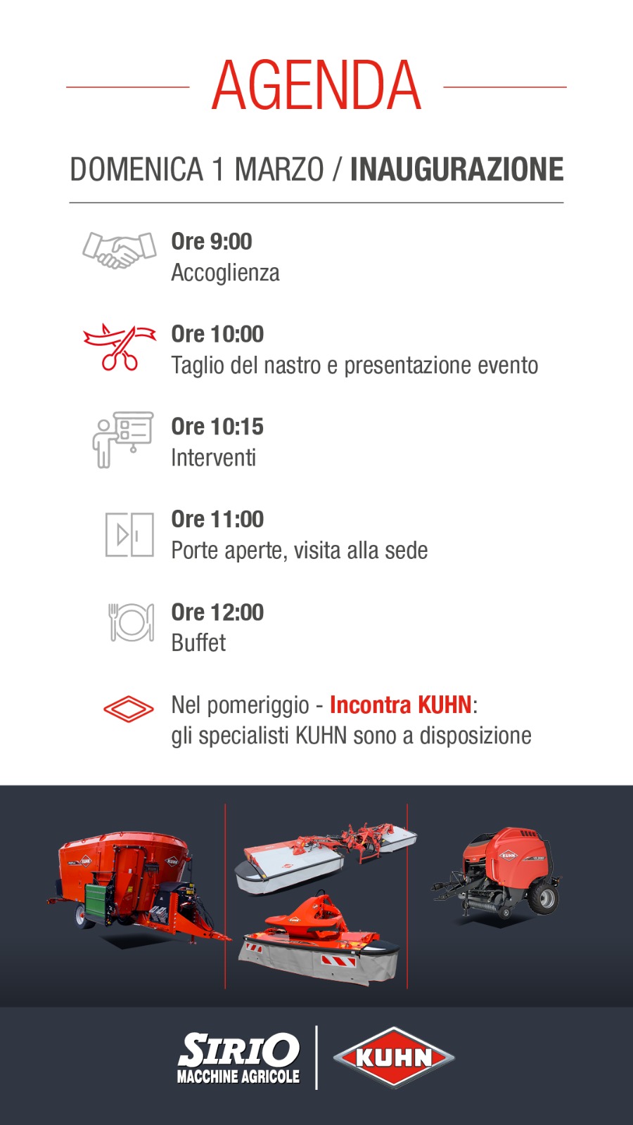 Un sentito ringraziamento per la partecipazione a Fausto Torelli, Sindaco di Montecchio Emilia, a Alessio Mammi, Assessore all’Agricoltura e Agroalimentare, Caccia e Pesca e Rapporti con l’UE, a Nicola Bertinelli, Presidente del Consiglio di Amministrazione del Consorzio del Parmigiano Reggiano, e a Giovanni Donatacci, Direttore Generale di KUHN Italia, che hanno voluto condividere con noi questo importante momento.